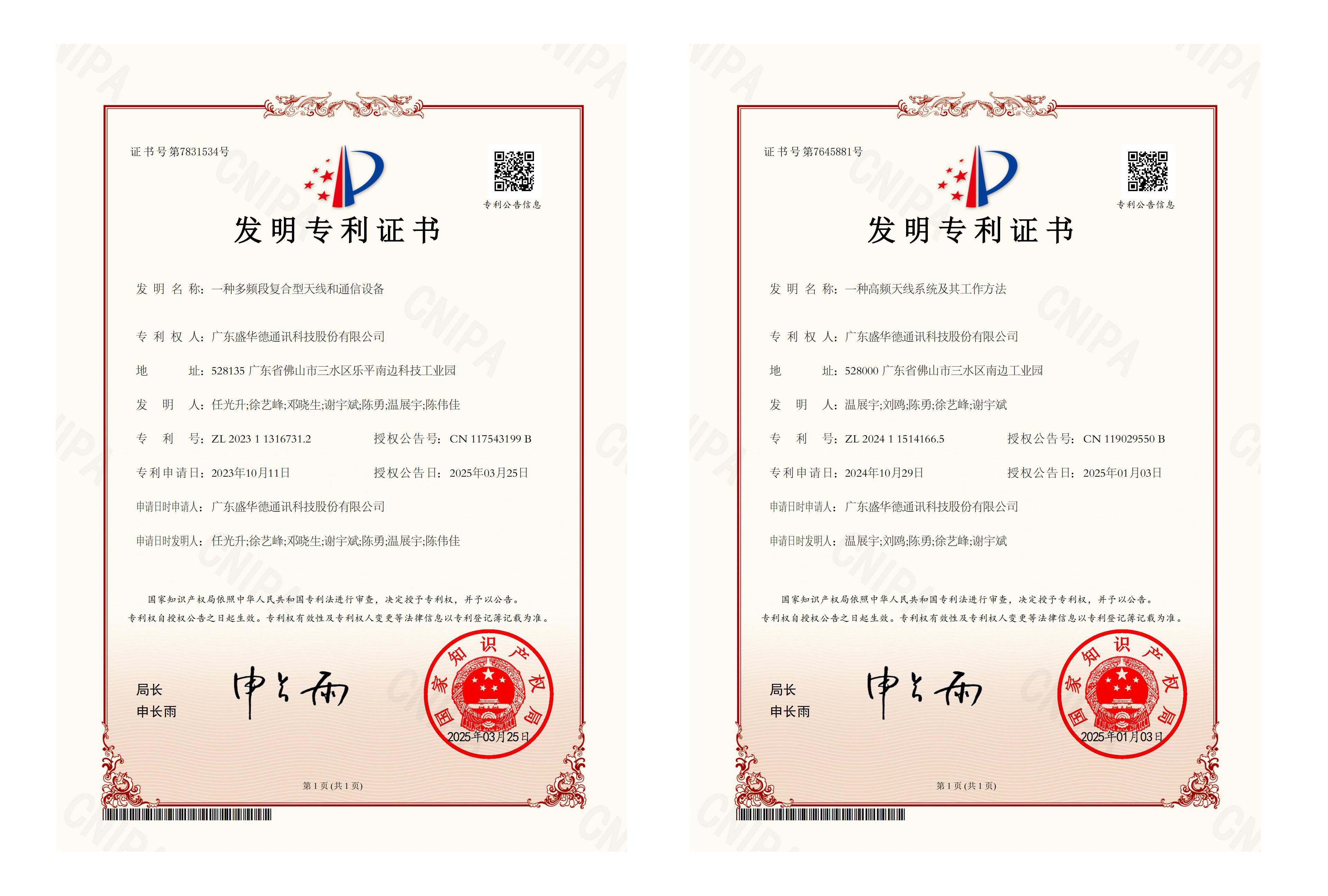 Good News 1: Breakthroughs in Technological Innovation, obtaining Four Invention Patents (as shown in the images below)